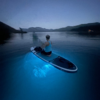 One of the highlights of this summer has been the launch of our new "Glow Cruise Light and Sound Experience," which has quickly become a favourite amoung adventure-seekers and those looking for a unique night-time activity. Imagine paddling under the starlit sky, guided by the soft glow of LED lights under your paddleboard, while ambient music fills the air. It’s a magical experience that transforms Gordon Bay and beyond into a captivating wonderland after dark. The tranquil waters reflect the shimmering lights, creating an unforgettable ambiance that’s perfect for a romantic evening, a family outing, or a memorable hangout with friends.